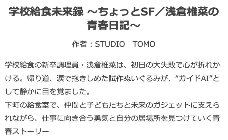 給食現場を物語に『学校給食未来録』ライトノベル化のご案内